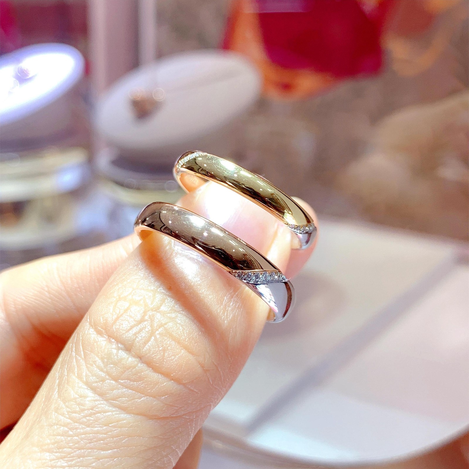 DR002A/DR002B 分色钻石精品情侣戒