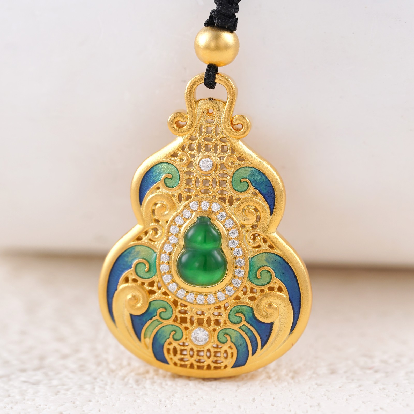GXP1085-黄金翡翠珐琅钻石吊坠