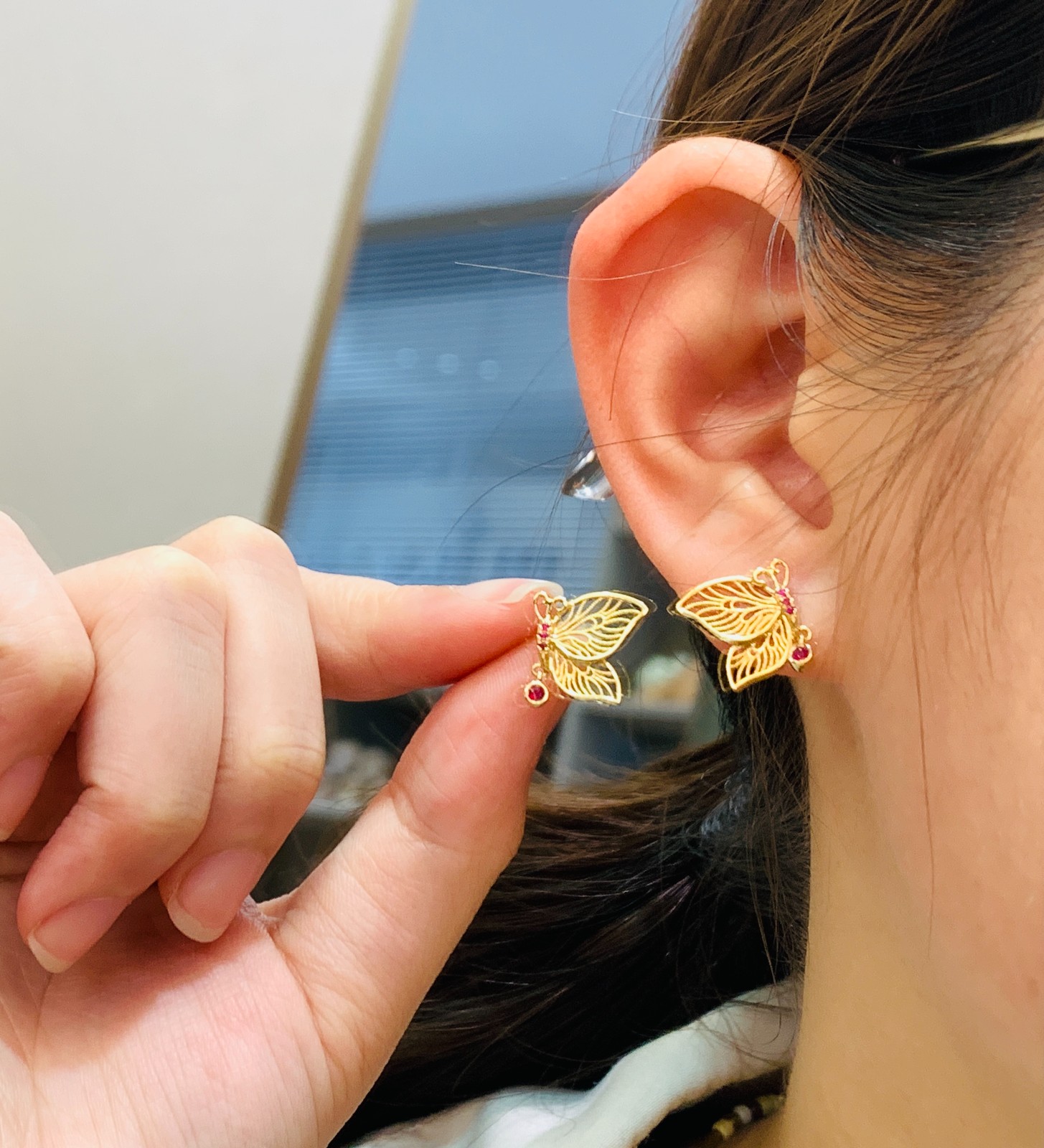 DZ489E-18K黄红宝石精品耳饰